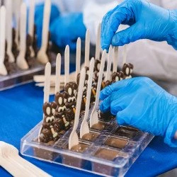 Ingrédients : Chocolat au LAIT 71% (sucre, beurre de cacao, LAIT entier en poudre, pâte de cacao, émulsifiant : lécithine de SOJA, arôme naturel de vanille. Cacao : 33% minimum), décor chocolaté 29% (sucre, beurre de cacao, pâte de cacao, LAIT entier en poudre, LAIT maigre en poudre, émulsifiant : lécithine de SOJA, arôme naturel de vanille, concentrés (spiruline, pomme, poivron), huile de tournesol, poudre de jus de betterave rouge, arôme naturel de carotte).